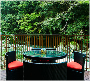 For your stay, we offer two room types: rooms with an open-air bath andstandard Japanese rooms. Both room typesprovide you a splendid view of the stream.